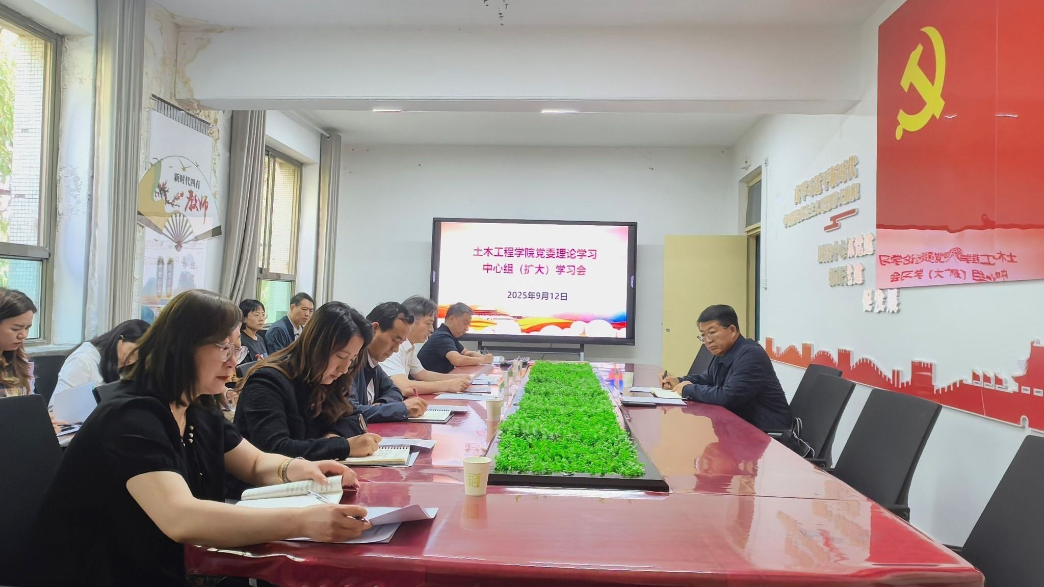 9月12日,365英国上市网站官网召开党委理论学习中心组(扩大)学习会,理论学习中心组成员、党支部书记、教研室主任、部分教师党员参加。党委常委、副校长杜明奎列席旁听了学习会。
