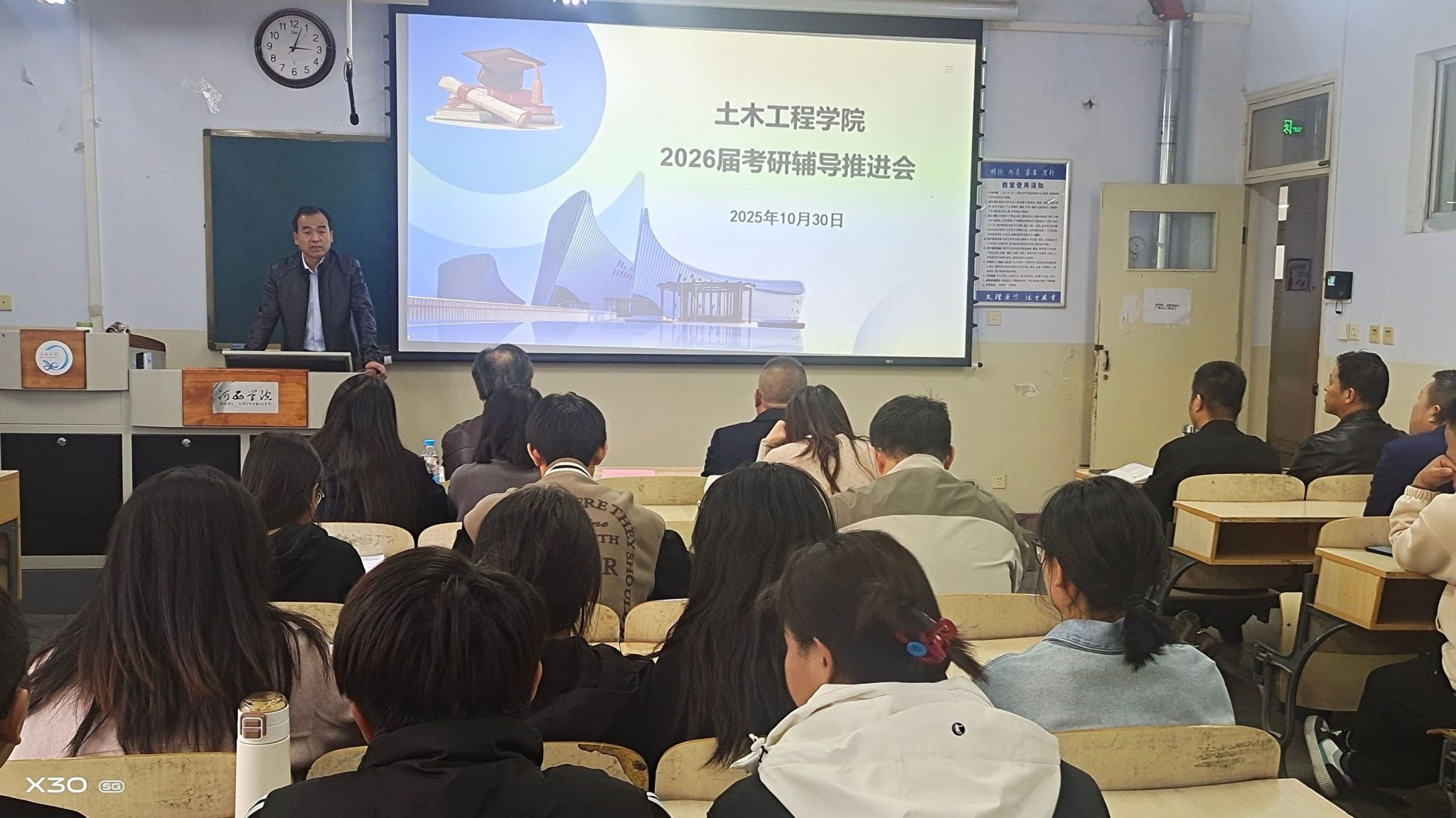 10月30日,365英国上市网站官网组织召开2026届考研辅导推进会。学院领导、专业课辅导教师以及70余名报考学生参加。